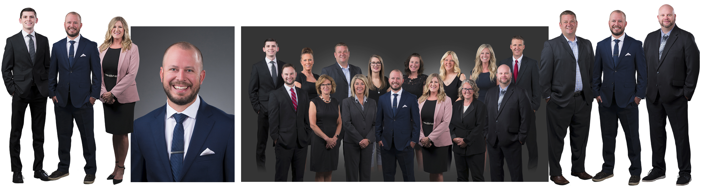 If you'd like group images of your team but you occasionally have turnover, our "Full Business Select" option allows us to easily add or remove team members from group images and keep your brand up to date without having to take everyone's photos over and over.
